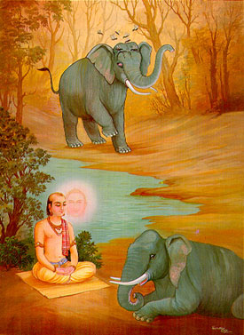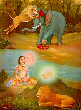 હે મુનીશ્વર! જેમ એક પ્રેમાળ અને સત્સંગી મૃગલી, પોતાની નબળાઈ અને શક્તિની અસમર્થતાને જાણતા હોવા છતાં, પોતાના શિશુને બચાવવા સિંહનો સામનો કરે છે; એ જ રીતે, મારી મર્યાદિત બુદ્ધિ અને ક્ષમતા હોવા છતાં, તમારી પ્રત્યેની મારી પ્રબળ ભક્તિ સાથે, હું આપની સ્તુતિ કરવાનું સાહસ કરી રહ્યો છું.